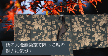 文化・歴史 秋の大濠能楽堂で隅っこ席の魅力に気づく 久しぶりに大濠の能楽堂に行ってきました。能の公演でなく、友達のお謡の発表会だったので、お客さんもそう多くなくゆったりな感じ。で、訳あって色々座席を移り、橋掛りのそばに座ったら・・・いや、ここいいですねえ!というお話をします。脇正面も実はいい... 2025.11.18 文化・歴史能